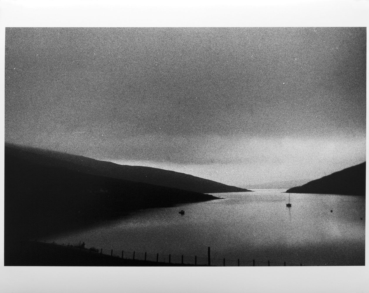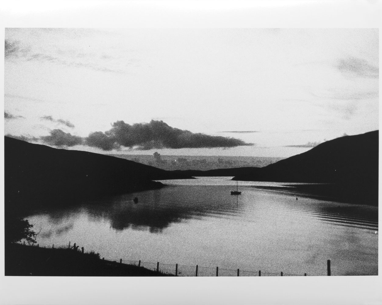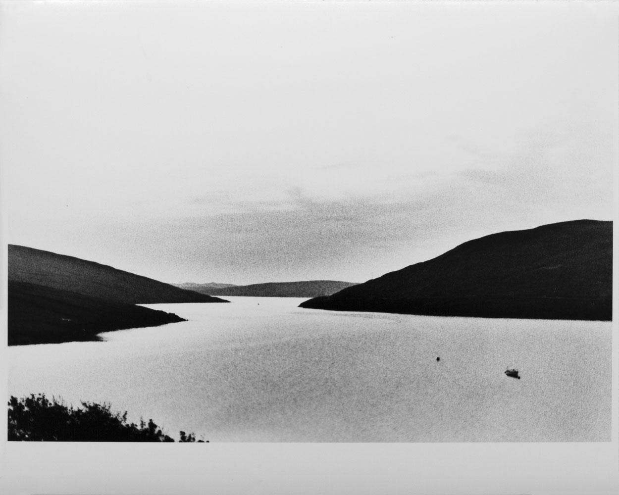 [gallery_desc]Recently, sifting old photographs, I came across a series of the same view, taken in Shetland, a bleak stretch of rock and peat balanced between the sky and the ocean, in which light and weather are so important and immediate. The relentless wind scours the land and trees cannot take root in the peat. Yet the air is clear and the light seems to exist as a physical substance, as though you could swim off into space. I chose to print in black and white from the original color negatives in order to distance the final image from the dramatic color of the sunsets, leaving a place that alters with the light but will be recognizable for centuries. In printing I worked as much from memories as I did from the negatives, slipping backwards and forwards in time and place between the darkroom and the recorded moment. The resultant prints portray what Roni Horn refers to as “places that are, at once, both actual and acts of imagination.”[/gallery_desc]